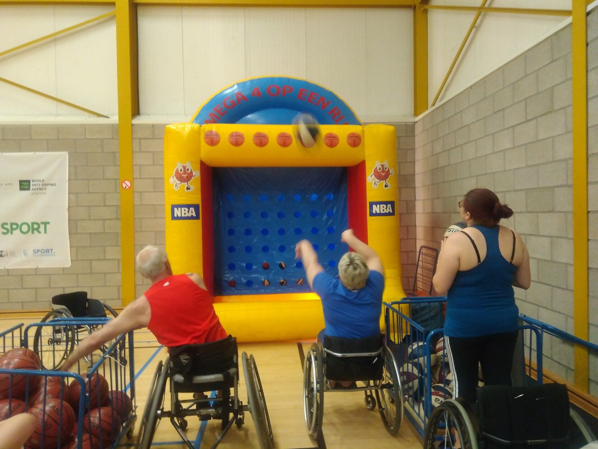 Voor rolstoelbasket werd de training geleid door Marc De Hert terwijl Greet Bervoets het rolstoeldansen voor haar rekening nam. Er werden technieken ingeoefend en beide groepen gingen ook bij elkaar op bezoek om elkaars sport te proeven. Een wedstrijdje 4-op-een-rij basket werd gewonnen door… de rolstoeldansers. Dit spel was één van de vele opstellingen die vzw Homerun in petto had om tussen de sportspecifieke trainingen door te animeren en de schwung er in te houden.